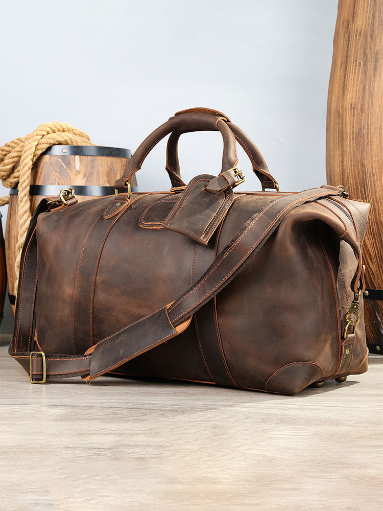Vintage-Inspired Crazy Horse Leather Travel Duffel Bag